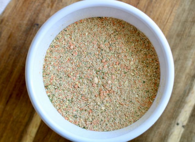 4. Finally, add the dehydrated powder to a small mason jar. Add 1/4 tsp salt, 1/4 tsp. black pepper, and 1/8 tsp nutmeg. Mix well.