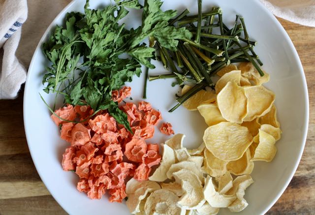 3. Next, grind the dehydrated vegetables in a coffee grinder until they are in powder form.